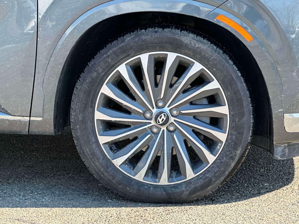 The Steel Graphite Stunner: This 2023 Palisade Calligraphy is finished in a sophisticated Steel Graphite gray-a timeless, low-maintenance color that perfectly complements the premium satin chrome grille.