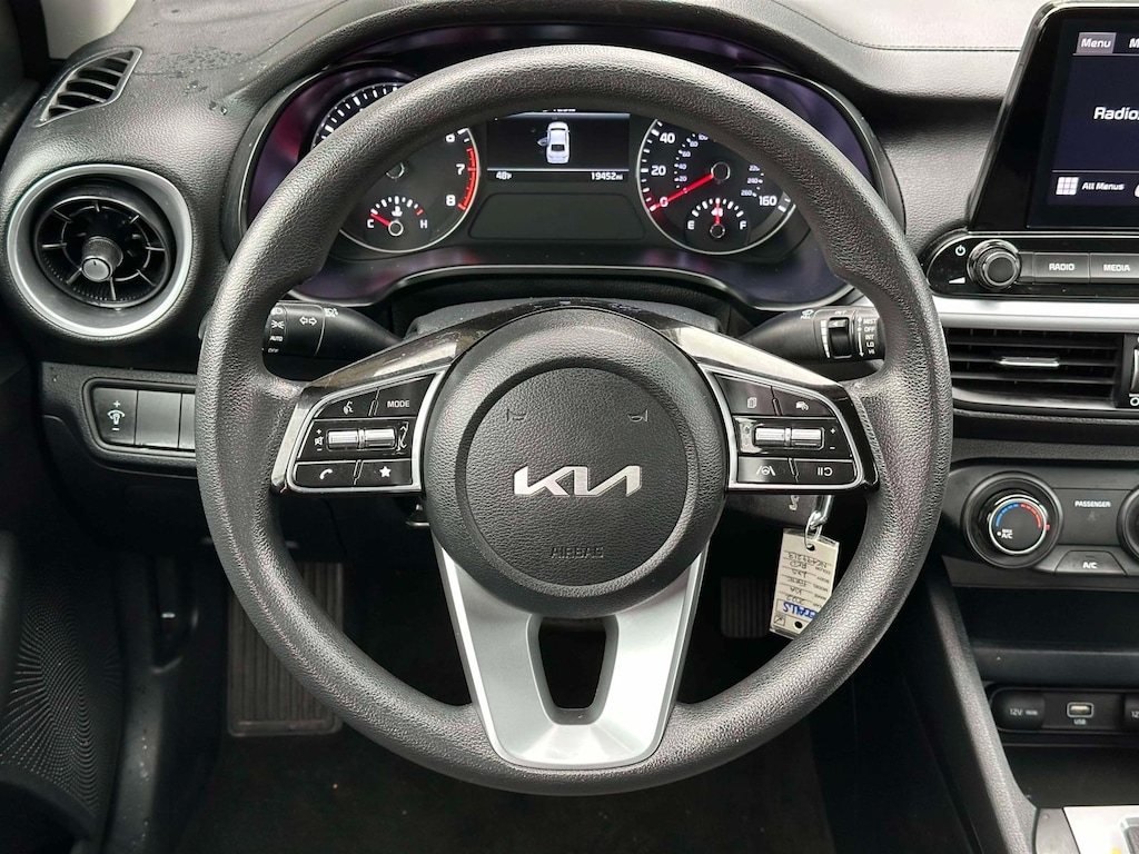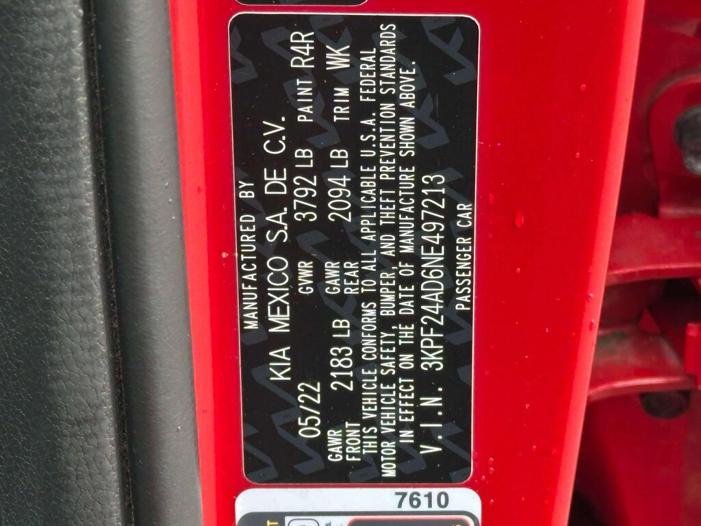 ""This one-owner 2022 Kia Forte LXS comes in a stunning red and features a clean CARFAX report." "Loaded with desirable tech, including standard wireless Apple CarPlay and Android Auto on its 8-inch touchscreen display." "Peace of mind comes standard with Kia's Drive Wise suite of safety features, including Forward Collision Avoidance Assist and Lane Keep Assist." "Enjoy an impressive EPA-estimated 29 City / 39 Highway MPG, perfect for saving at the pump." "Features a comfortable and roomy cabin with durable cloth seats and a very large trunk for a compact sedan." Este Kia Forte LXS 2022 de un solo dueño viene en un impresionante color rojo y cuenta con un historial limpio en CARFAX. Está equipado con tecnologÃa deseable, incluyendo Apple CarPlay y Android Auto inalámbricos de serie en su pantalla táctil de 8 pulgadas. La tranquilidad viene de serie con el conjunto de caracterÃsticas de seguridad Drive Wise de Kia, que incluye Asistencia de Evitación de Colisión Frontal y Asistencia de Mantenimiento de Carril. Disfruta de un impresionante rendimiento estimado por la EPA de 29 MPG en ciudad / 39 MPG en carretera, perfecto para ahorrar combustible. Cuenta con un interior cómodo y espacioso con asientos de tela duraderos y un maletero muy grande para un sedán compacto."