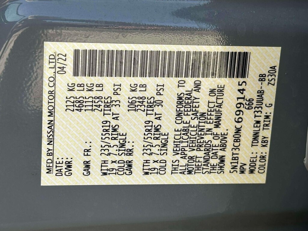 - Front tires: 235/55VR19.0
