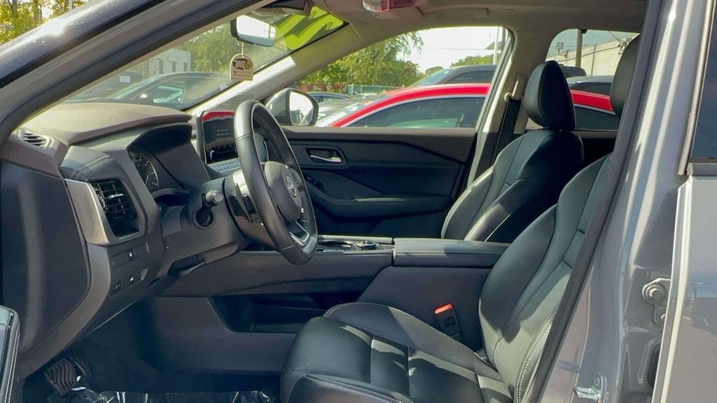 Like-new with minimal use: As a 2022 model with low mileage, this Rogue has been gently used and well-cared for. It offers the modern feel and reliability of a new car without the new car price tag. Fuel-efficient for daily drives: With a 1.5L VC-Turbo 3-cylinder engine, this model is rated for up to 30 MPG city and 37 MPG highway, or up to 28 MPG city and 35 MPG highway with all-wheel-drive. This makes it an economical choice for commuting or road trips. Top-of-the-line features: The SL trim level comes generously equipped with premium features, including leather seats, a heated steering wheel, and a panoramic moonroof. Como nuevo con mínimo uso: Como modelo 2022 con bajo kilometraje, este Rogue ha sido cuidadosamente usado y bien cuidado. Ofrece la sensación moderna y la confiabilidad de un auto nuevo sin el precio de un auto nuevo. Eficiente en combustible para viajes diarios: Con un motor VC-Turbo de 3 cilindros y 1.5L, este modelo alcanza un consumo de hasta 30 MPG en ciudad y 37 MPG en carretera, o hasta 28 MPG en ciudad y 35 MPG en carretera con tracción total. Esto lo convierte en una opción económica para desplazamientos diarios o viajes por carretera. Características de primera línea: El nivel de equipamiento SL viene equipado con generosas características premium, como asientos de cuero, volante calefactable y techo corredizo panorámico.